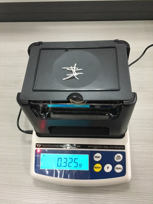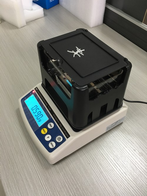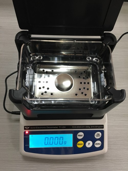 2. 將產(chǎn)品放入水中測水中重量,按ENTER鍵記憶,顯示密度值
